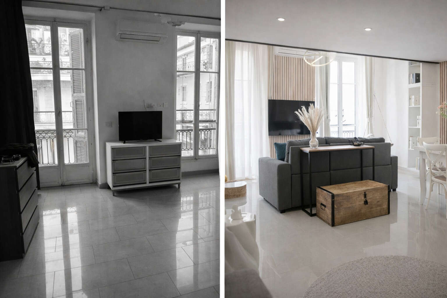 Ce projet illustre notre approche globale en rénovation et décoration d’intérieur à Nice : structurer les volumes, optimiser les surfaces et créer des intérieurs à forte identité, à la fois élégants, durables et rentables.