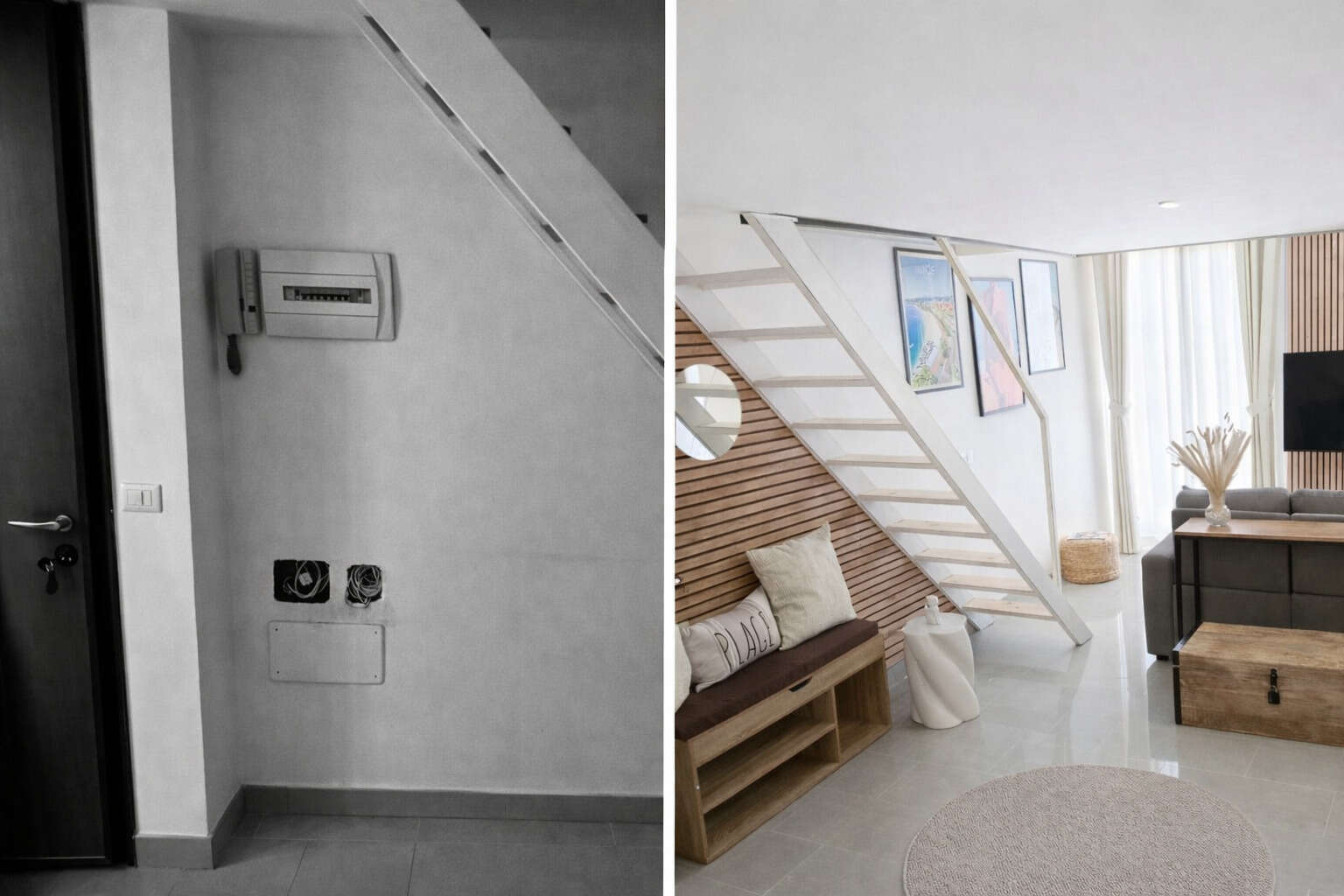 Chaque choix — matériaux, éclairage architectural, verrière, claustra, palette neutre et bois naturel — a été pensé pour valoriser le bien, renforcer son attractivité et optimiser son potentiel locatif.